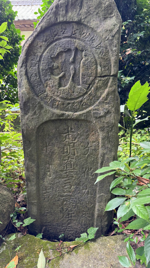 石段を少し登った右手に石仏がありますが、その中に光明真言二億供養塔があります。
