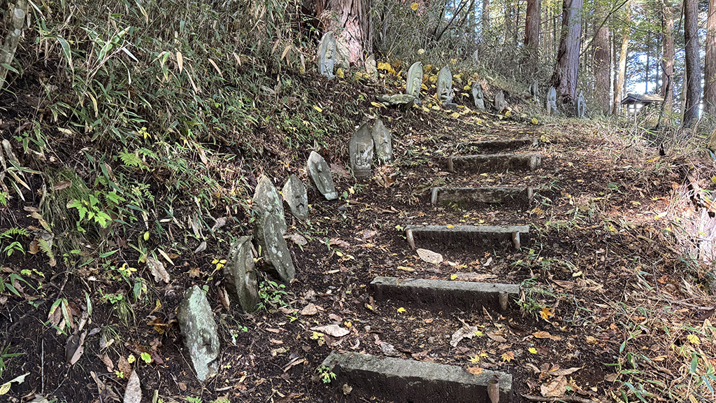観音堂の裏手にある薬師堂から先に進むと四国八十八ヶ所霊場本尊石仏が佇んでいます。