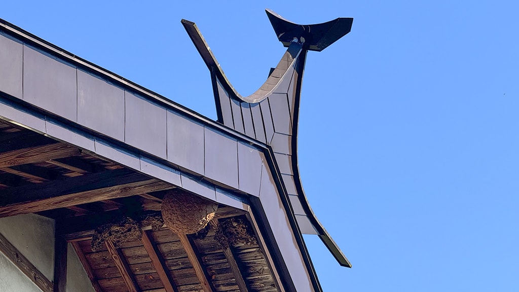庫裏の屋根です。軒にはスズメバチが巣をつくり活動をしていました。